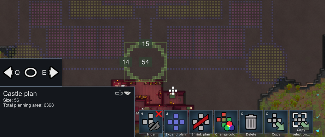 Способы рисования. Инструменты, такие как размещение стен и полов и раздача указаний, теперь можно использовать по-разному. Их стиль меняется при нажатии и перетаскивании. Раньше вы могли использовать только прямоугольники и прямые линии. Теперь вы можете использовать диагональные линии, пустые и заполненные овалы. Отличные новости для строителей, которые хотят добавить большего разнообразия форм в свои базы (теперь не нужно искать генераторы пиксельных кругов)! Квадраты теперь тоже легко делать — просто зажмите Ctrl, пока рисуете инструментом.
