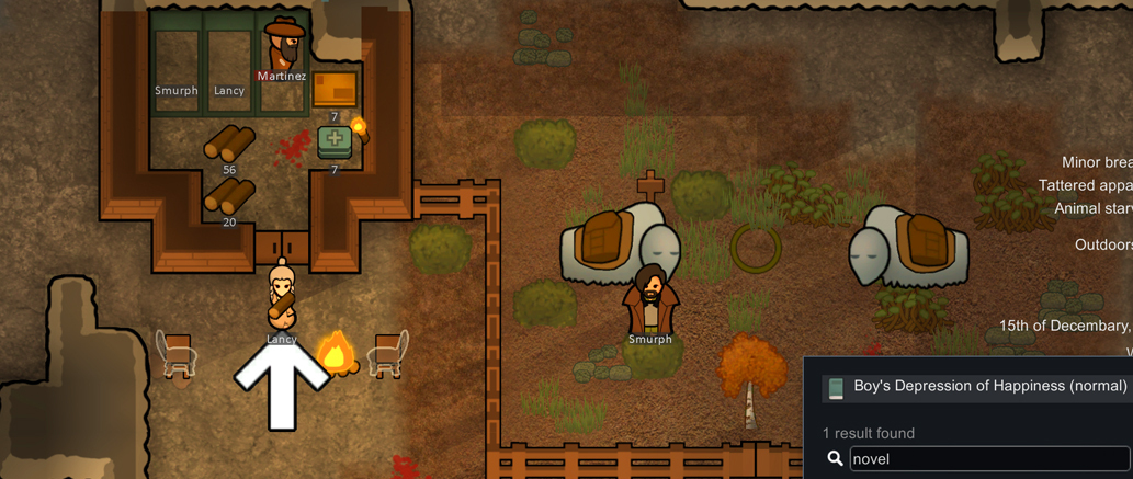 Улучшение поиска. Внутриигровой поиск (лупа в правом нижнем углу или клавиша «Z») лучше ищет вещи. Он изучает снаряжение ваших поселенцев и все контейнеры, а также его можно использовать на карте мира. Заодно мы добавили строку поиска в меню сохранения/загрузки, чтобы вы могли найти то самое любимое старое сохранение «анфрк2_финал_финал2_смерть».
