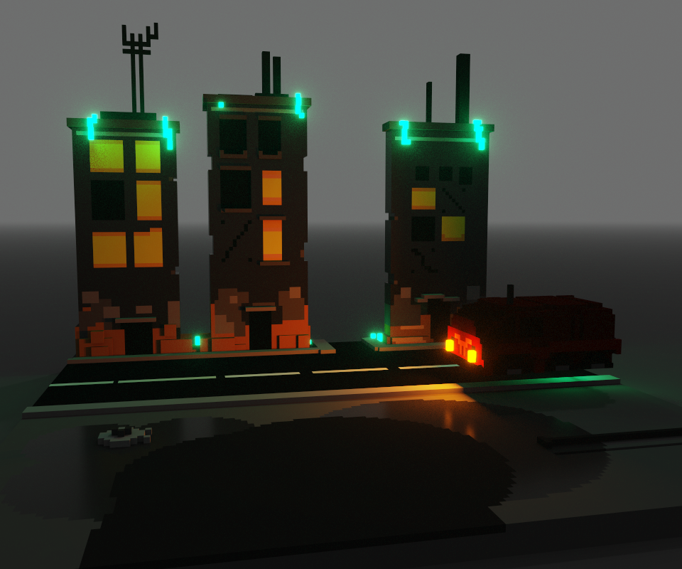 С рендерами, в смысле со световым решением и ракурсом, все еще думаю, фишай прикрутил, шумы, цветной свет - пока не финал. Если понравится в вокселах, в принципе не составит проблем расширить сценку до полноценной работы.