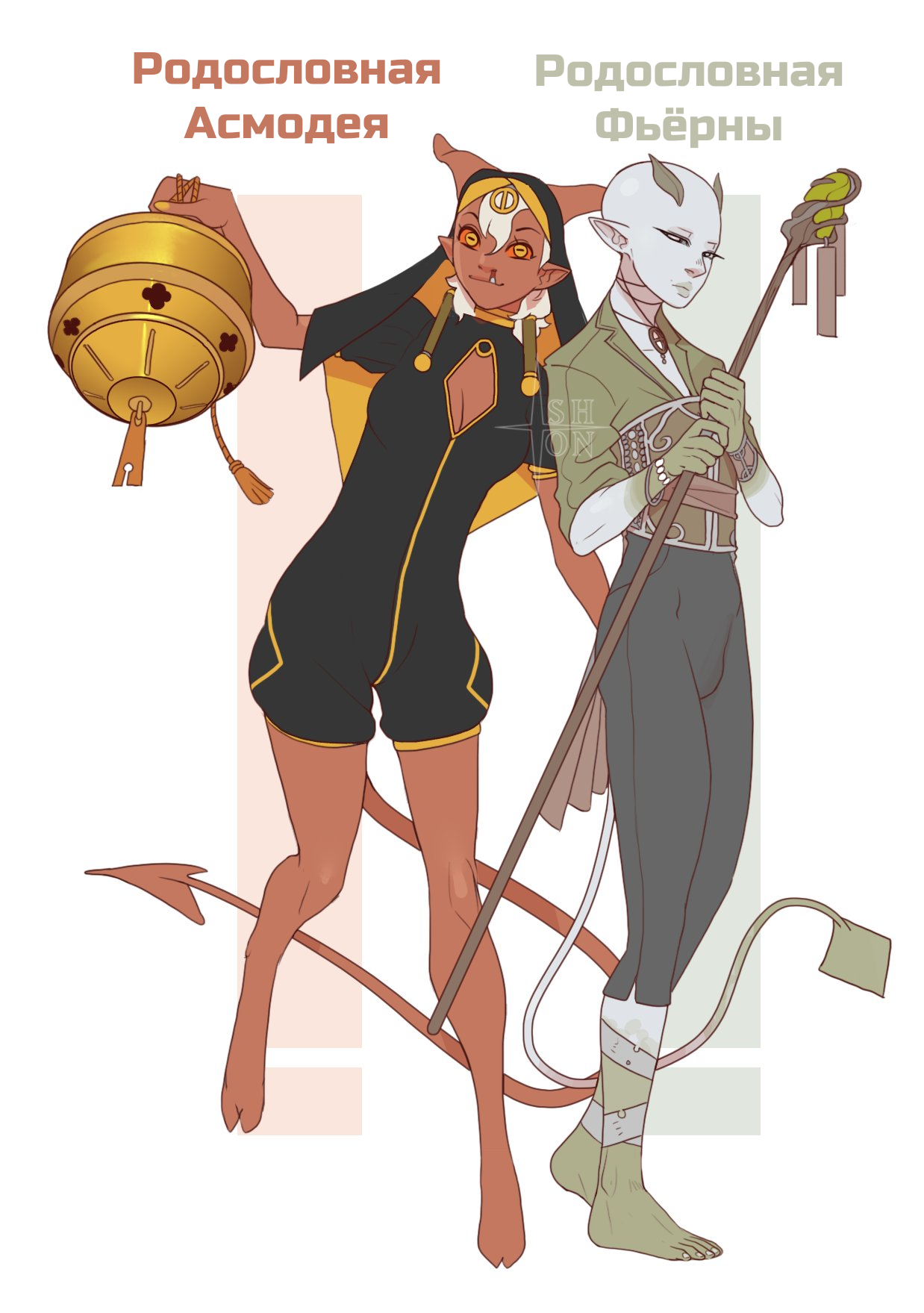 Вот как будут выглядеть два тифлинга, если они поменяются классами/родословными.