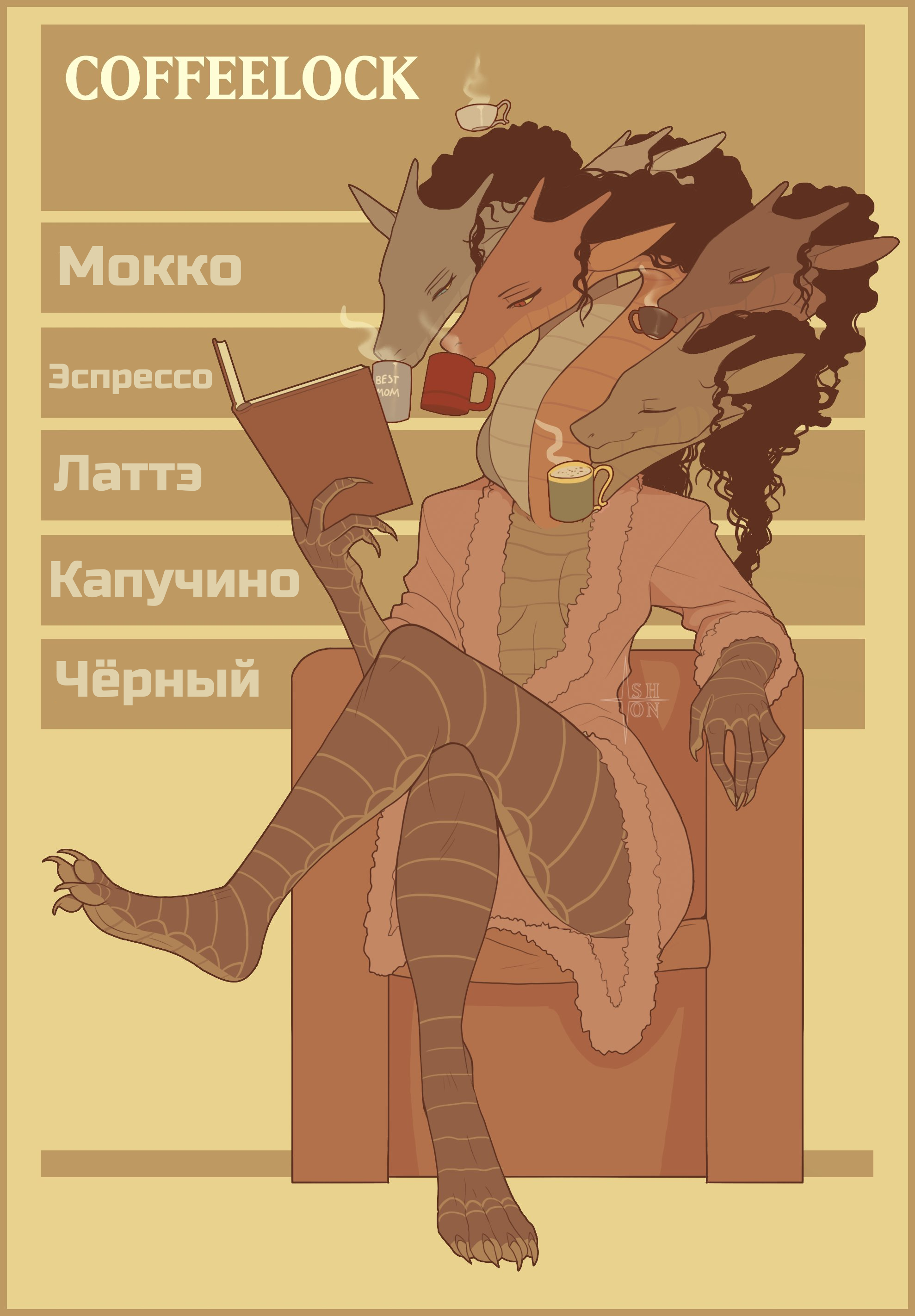 То самое чувство когда у тебя пять голов и ты можешь выпить 5 чашек за раз утром.*Хз как правильно перевести название Coffeelock. Зацикленный на Кофе?