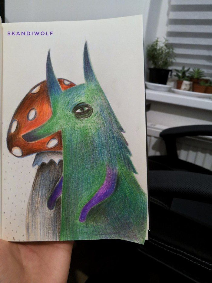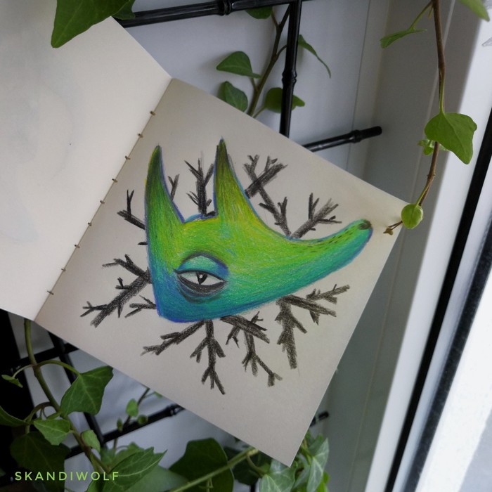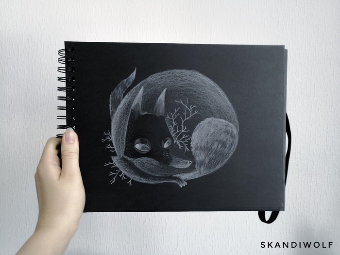 А вот этого волка я нарисовала во время инктобера. Не чернила, конечно, но черно-белое.