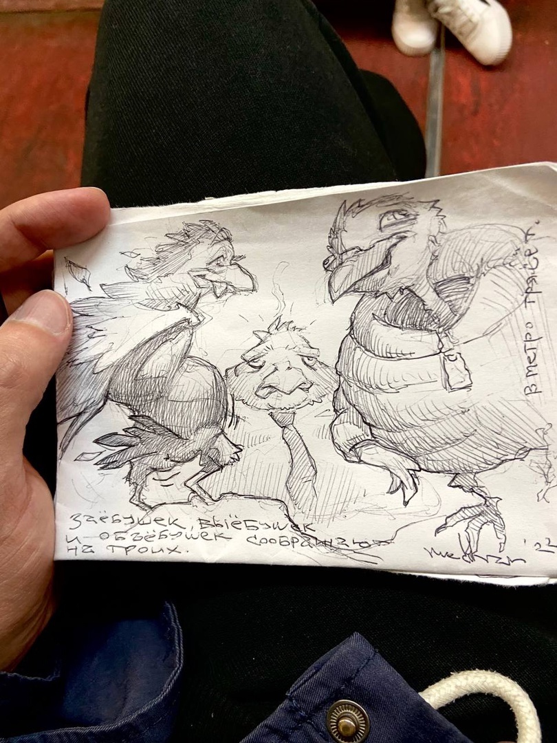 В перерывах обеденных и во время катания в метро устраивали интерактив в Telegram, рисунки по заявкам.