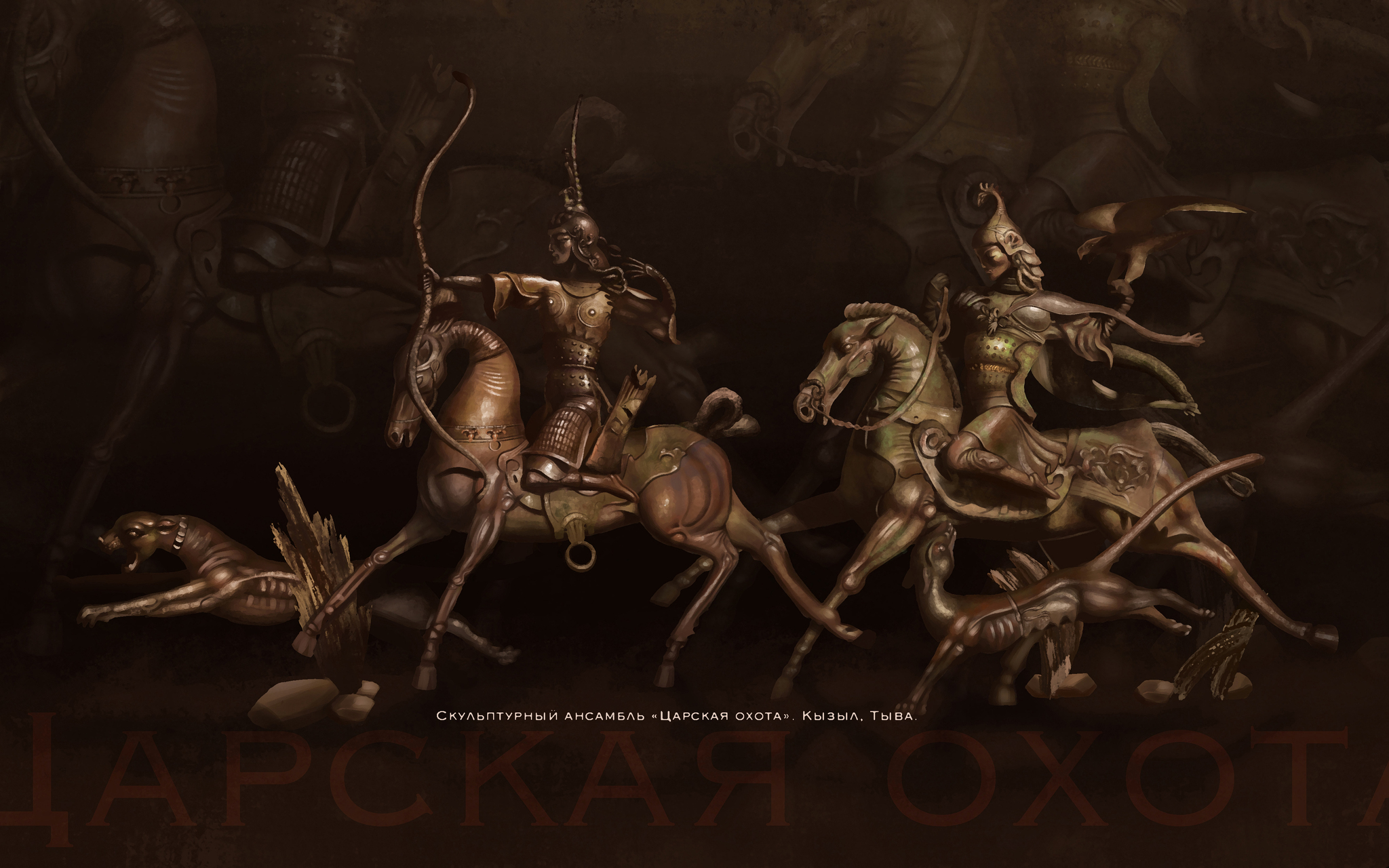 Рисунок скульптуры «Царская охота» Д.Намдаков