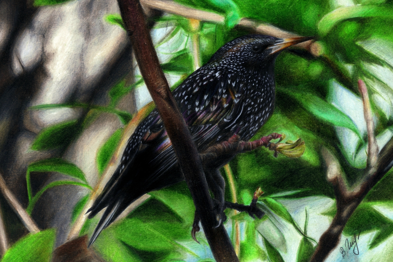 12 veraizo Рисунок "Скворец на ветке" 8 лет назад "Скворец на ветке" Бумага для черчения, Формат А4.Карандаши цветные Prismacolor Premier,акрил белый. [моё] Скворец Картина Рисунок карандашом Рисунок Арт Художник Карандаш Цветные карандаши Длиннопост