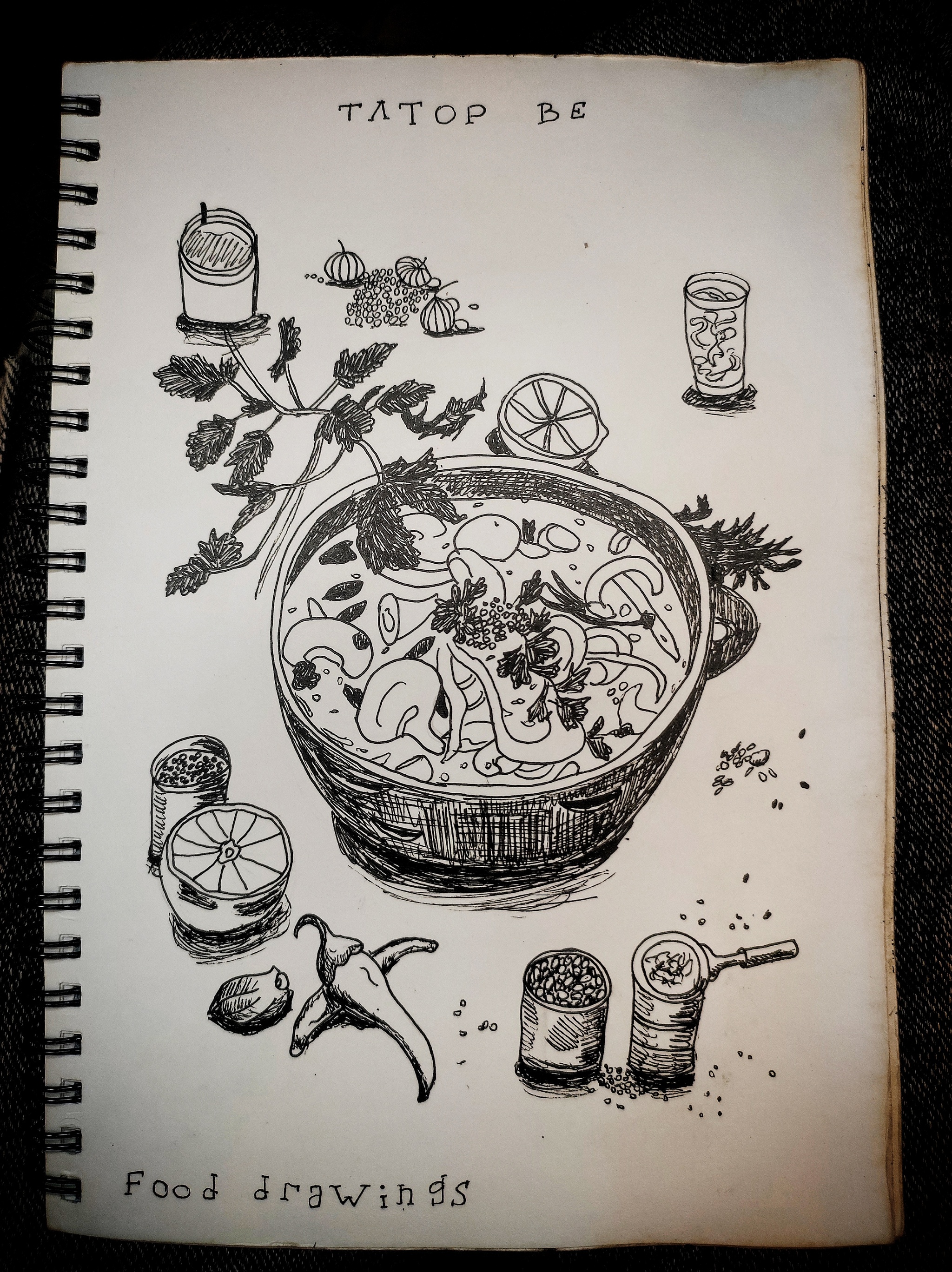 Увидев на просторах Пинтереста красивую еду, мне как всегда захотелось её повторить, чтобы запомнить как в дальнейшем можно нарисовать еду. + 1 опыт.