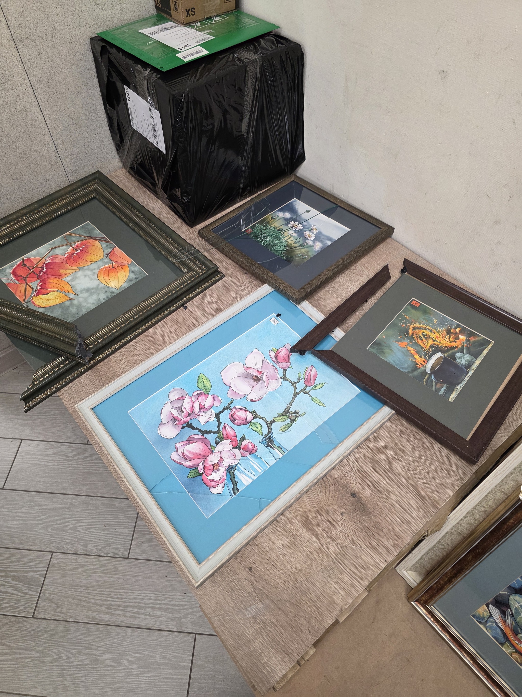 Отсылала 33 работы СДЭКом из Минска в Москву на выставку. Из Москвы они уехали на выставку в Кронштадт и вот сегодня вернулись ко мне в Минск. Упаковано всё было в пупырку, стрейч пленку и обрешетку дополнительно.