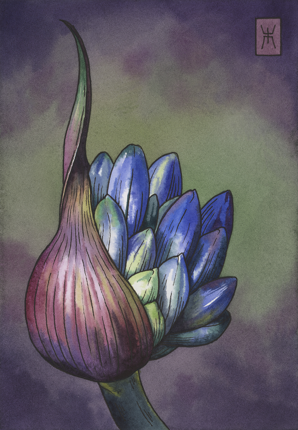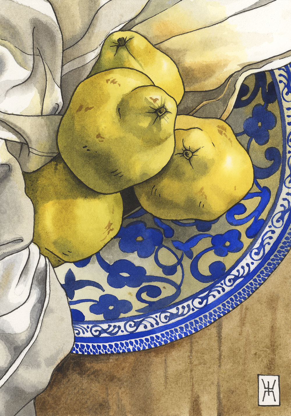 Айва. Акварель, хлопок А5, линеры. 2021г. Оформлена в раму с паспарту. 50т.р.