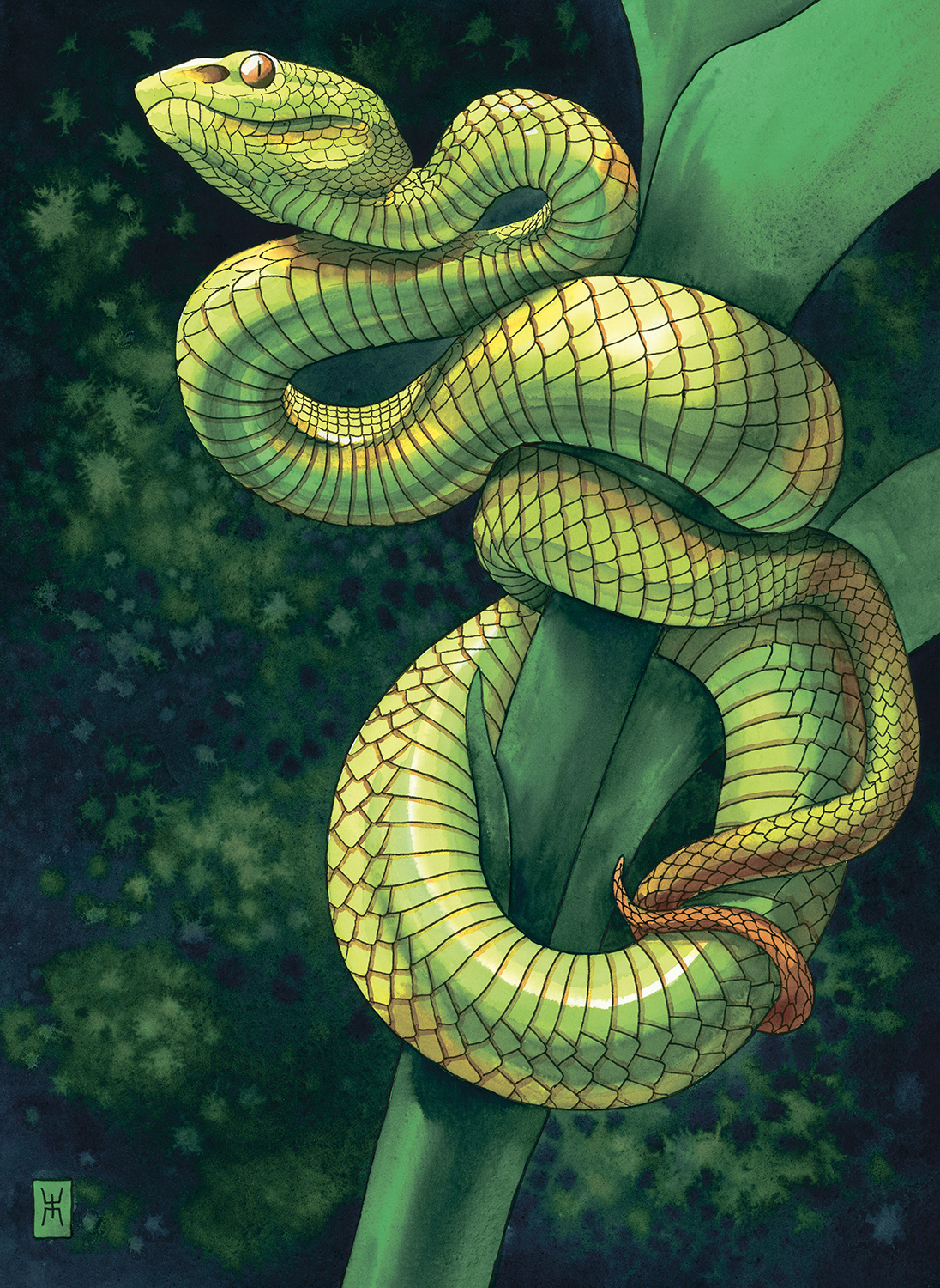 Змея. Акварель Миджелло, хлопок Баохонг А3, линеры. 24г. Оформлена в раму и паспарту. 150т.р.