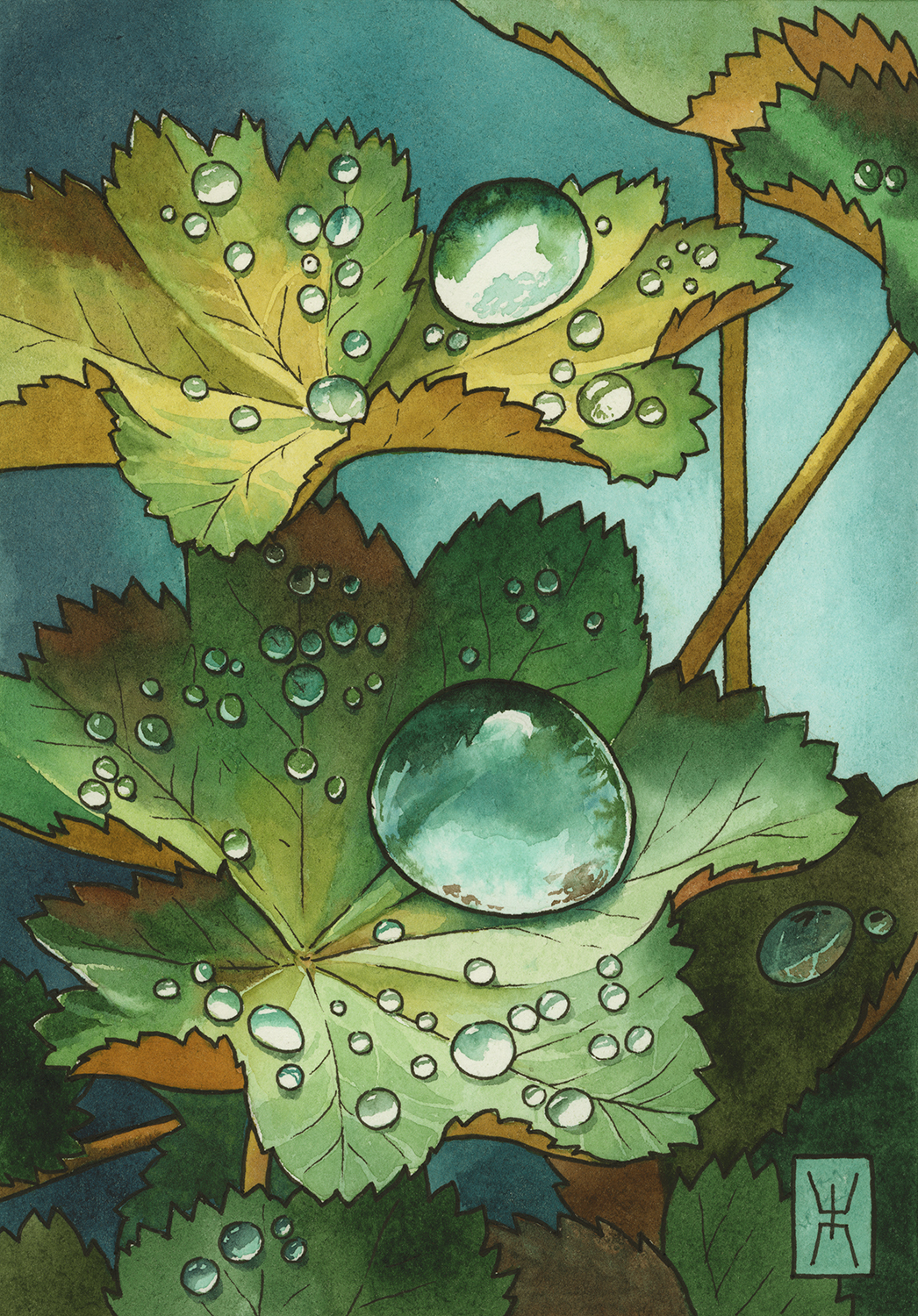 Капли. Акварель, 100% целлюлоза LANA 14х20 см., линеры. 2020г. Не оформлена. 30т.р.
