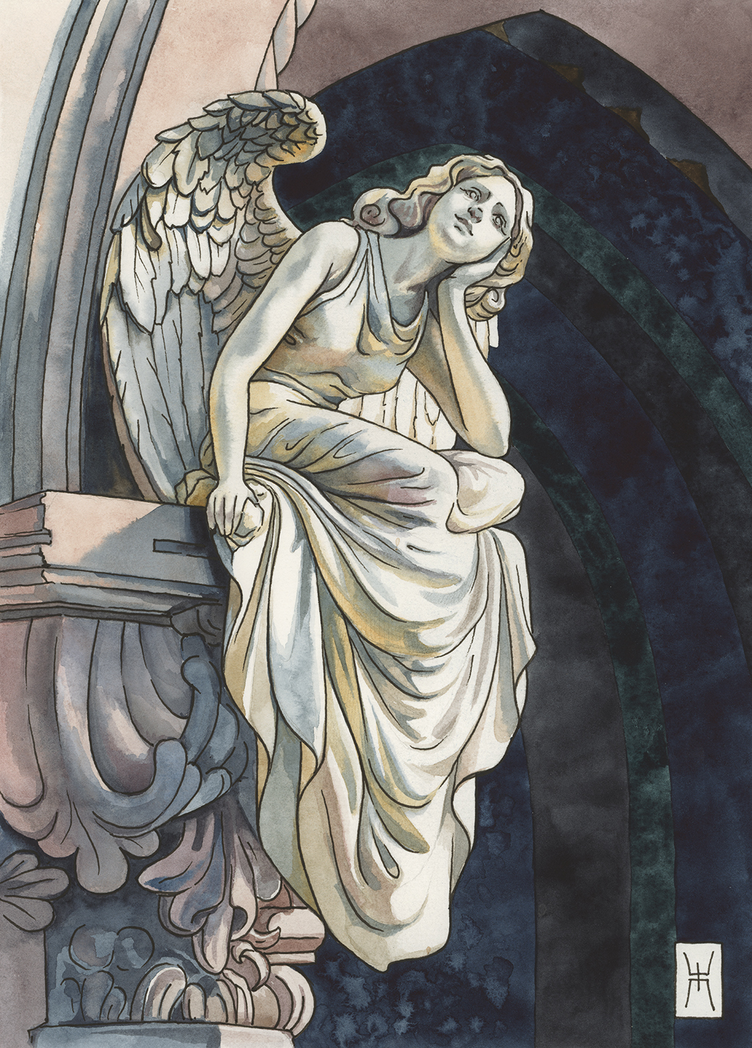 Ангел. Акварель, хлопок А4, лнеры. 2020г. Не оформлена. 50т.р.