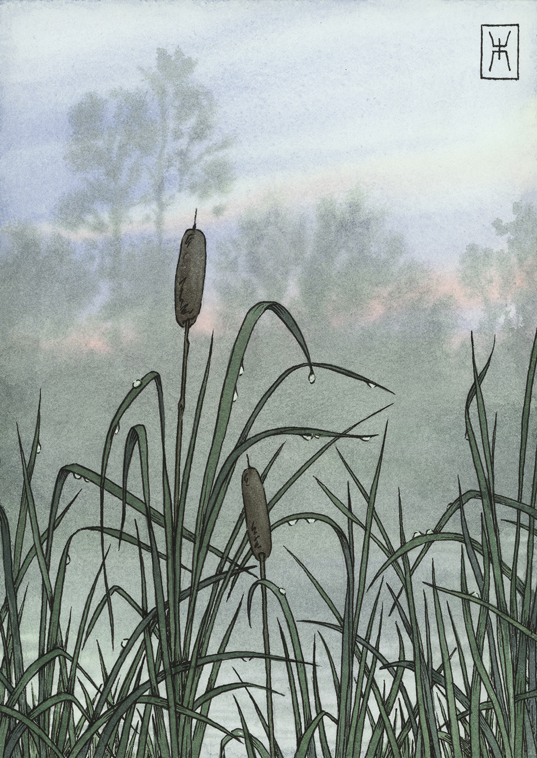 Рисую акварелью всякое. Картина + референс "Рогоз"