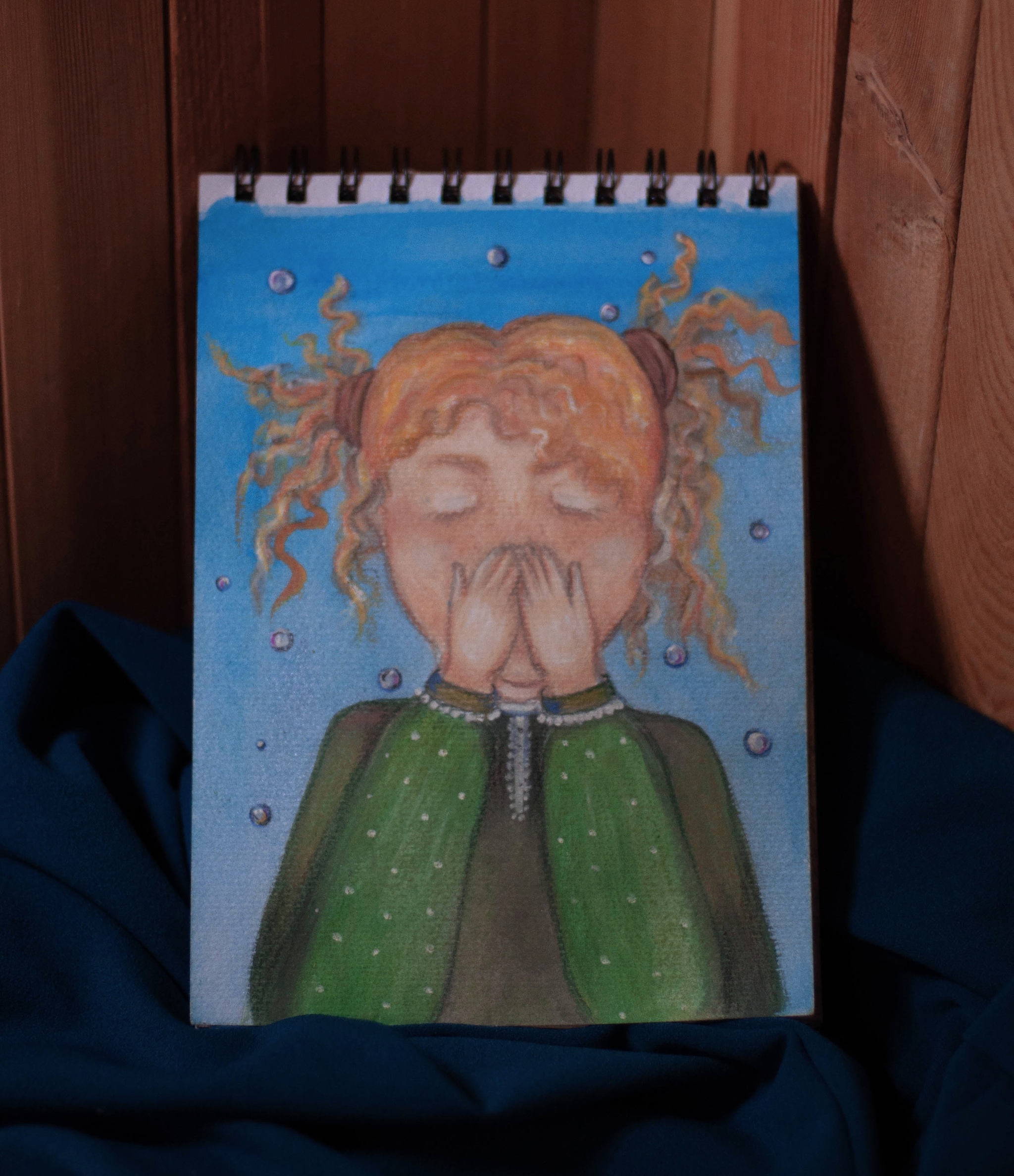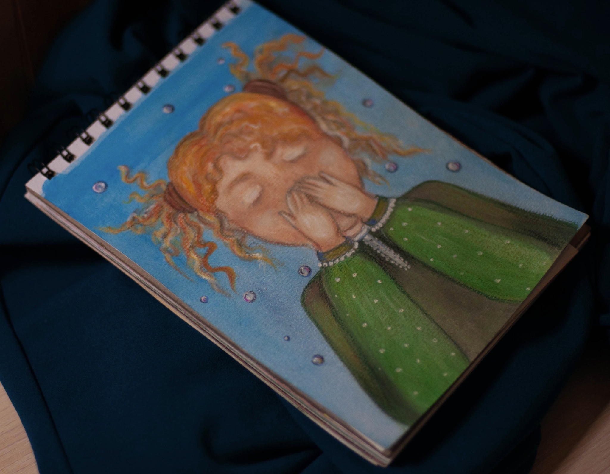 Смешанная техника: гуашь, пастель и цветные карандаши. Формат 15×19