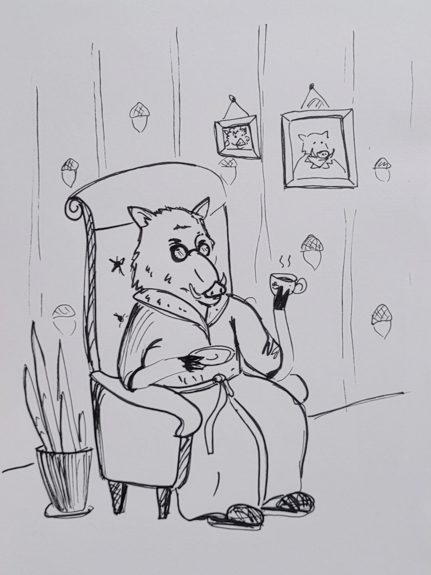 5 GarmoniaHaosa Рисую каждый день. 304/365 3 месяца назад 1 ноября. Тема: кабан+кресло [моё] Скетч Рисунок Inktober Ещё 0