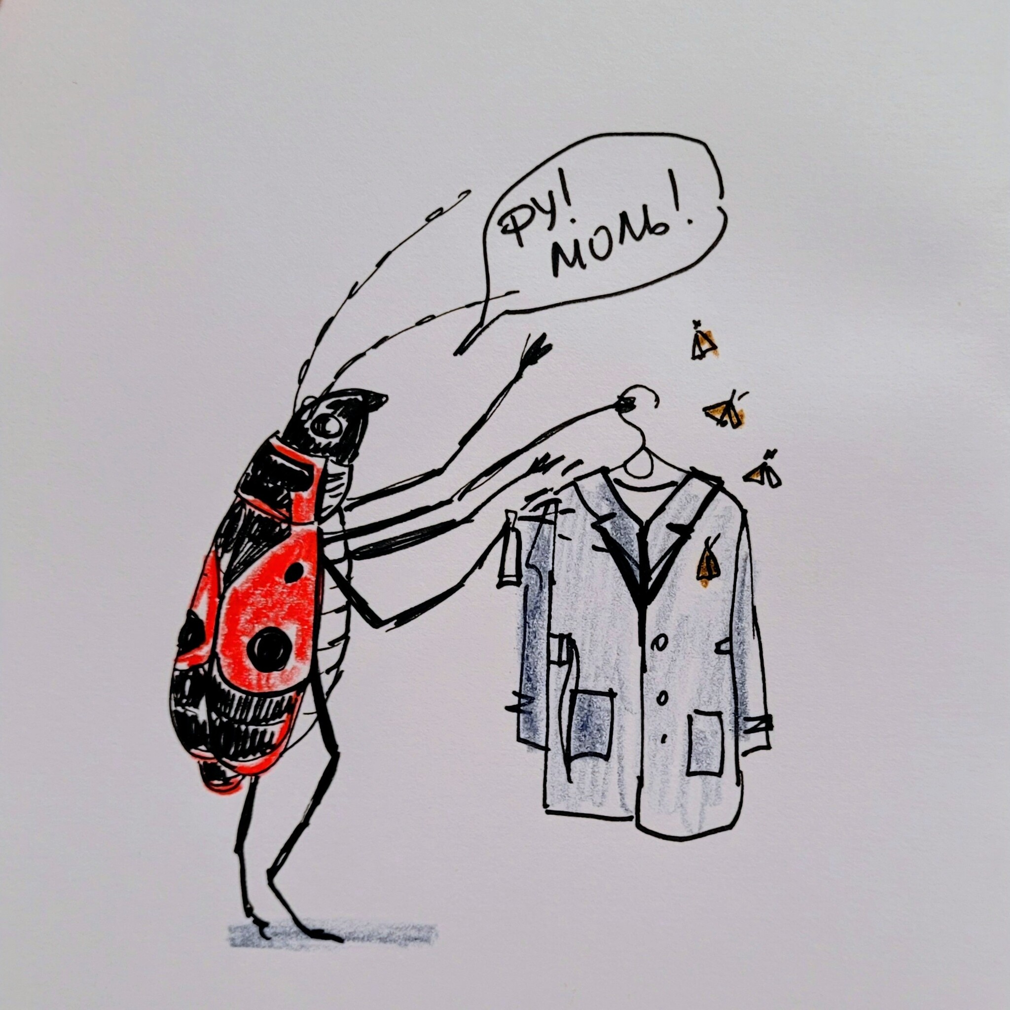 7 GarmoniaHaosa Рисую каждый день. 314/365 24 дня назад 11 ноября. Тема: клоп+пальто [моё] Арт Рисунок Скетч Ещё 0