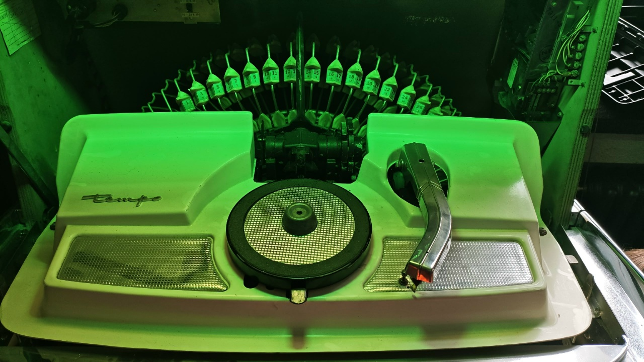 Сделано в США. Все же видели такие проигрыватели винила в старых фильмах?