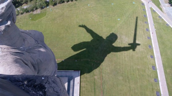 Кто не знает или не был в Волгограде скульптура Родина-Мать зовёт одна из больших скульптур в Мире, общая высота которой 85 метров. Фото тоже с просторов)
