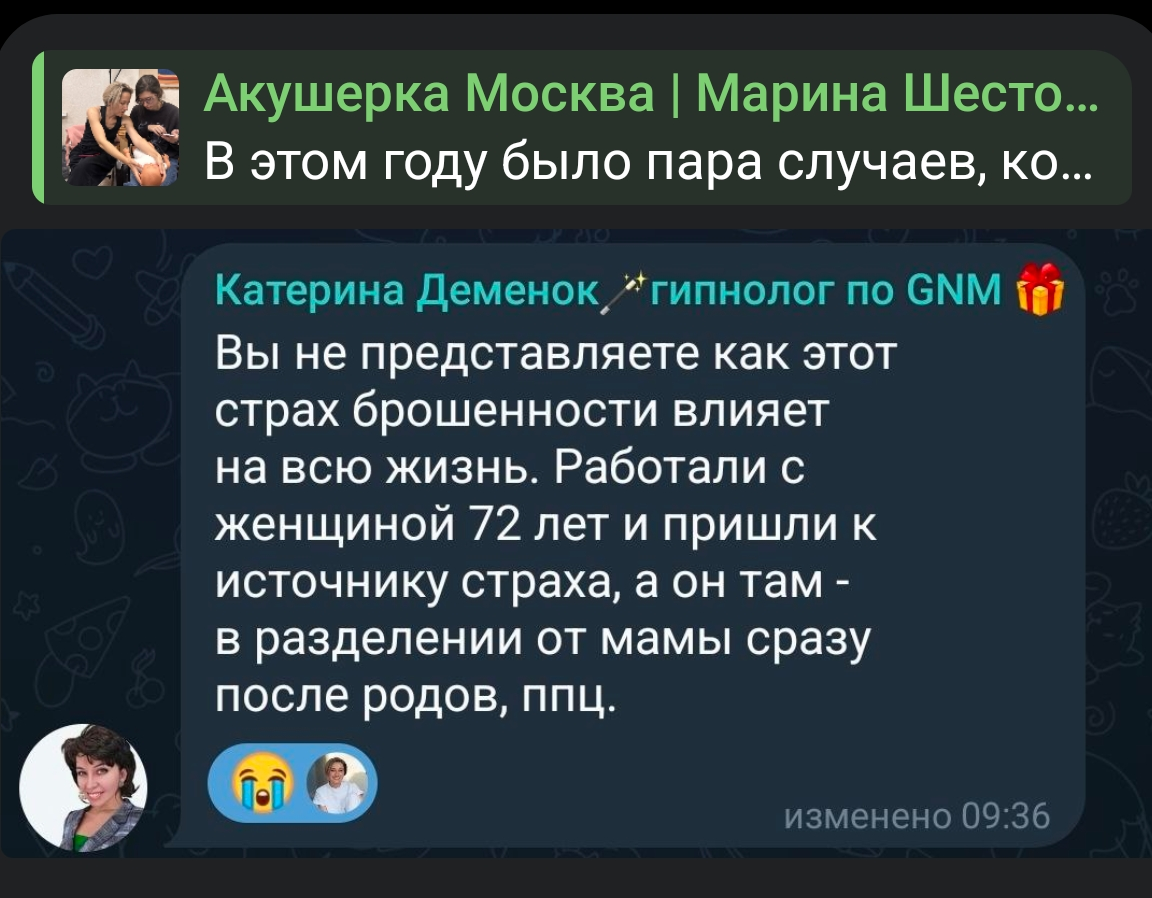 Недавно общалась с врачом-регрессологом по поводу раздельного пребывания мамы и малыша после родов. Очень хочу чтобы прочитали этот комментарий.