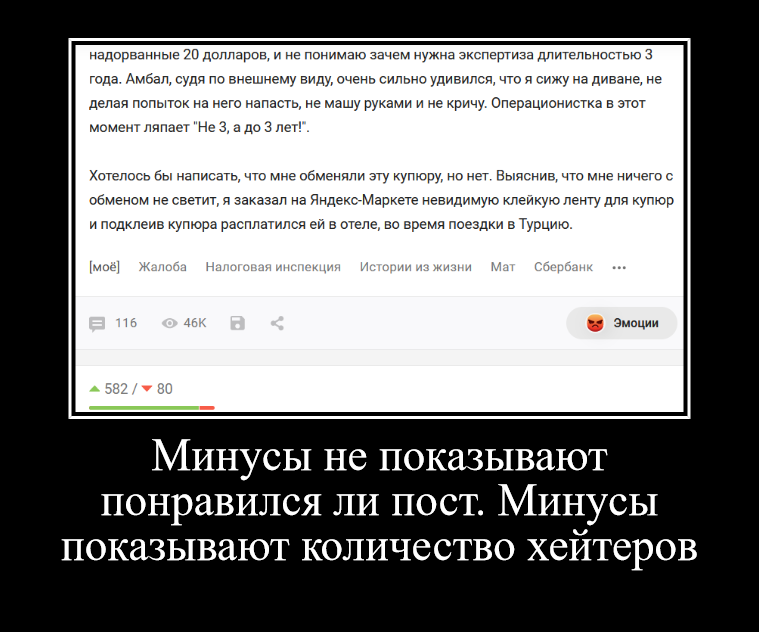 Приведу еще один пример подтасовок системы голосований. Десять месяцев назад я написал пост о Сбере, пост понравился пользователям, и я получил несколько сотен плюсов и несколько минусов. После же моего поста, в котором я написал о недоказанной эффективности антиковидных прививок, несколько десятков человек поставило минусы посту. Ну, не может старый пост на пару дней вдруг резко разонравиться нескольким десяткам пользователей. Налицо злоупотребление рейтинговой системой.