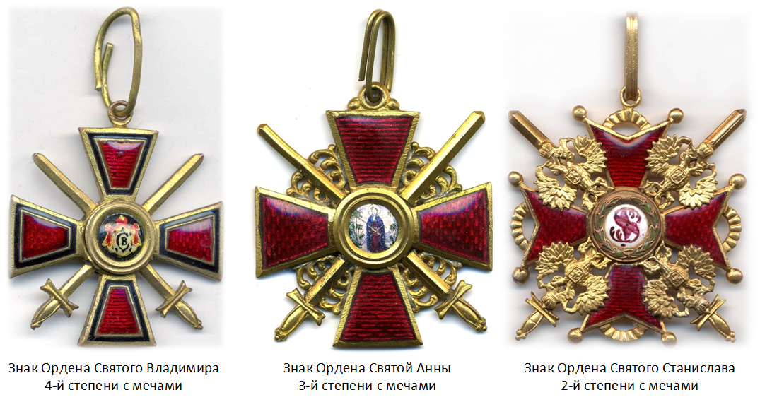 Российские награды Ореста Веймара, согласно исследованиям П.Н. Столпянского и Н.И. Троицкого. Изображения взяты с сайта http://medalirus.ru/rus-ordena/