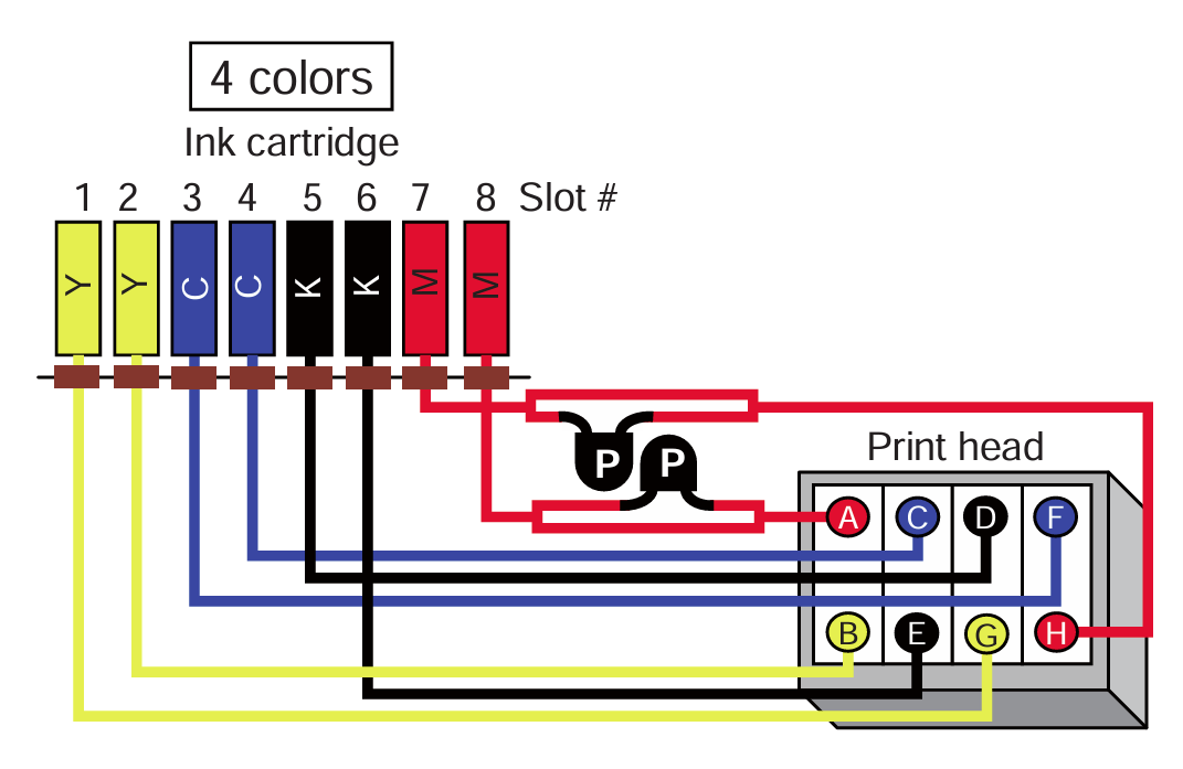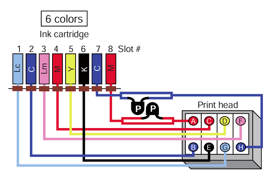 Принтер поддерживает три варианта цветовых конфигураций - 4цв , 6цв и 8цв WMT