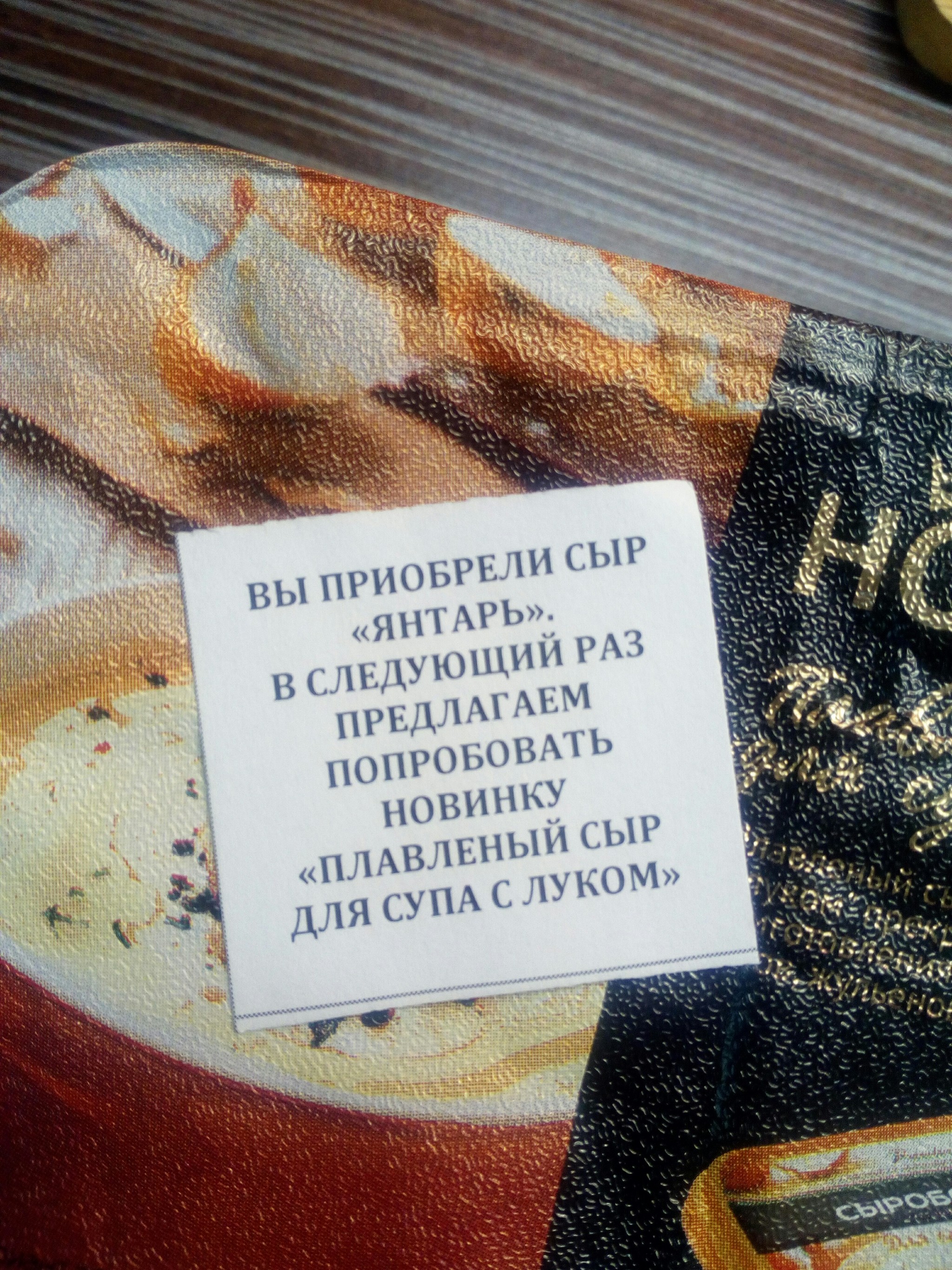 Открываю сыр, а там маленькая бумажечка. Ага, думаю я, не ушла романтика из нашей жизни. Тем более первое сентября, решил жену учительницу поздравить/с первым днем осени/ с приближающейся годовщиной и т.п.