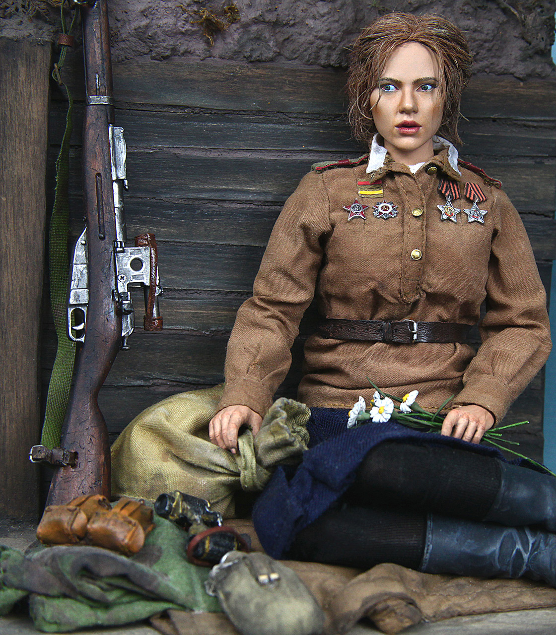А теперь к новостям. Хакерам удалось обнаружить секретную фото сессию Скарлетт Йоханссон, датированную 2015-м годом. Как удалось выяснить, она была приглашена русским мастером Дмитрием Хакимовым для инсталляции на тему Великой Отечественной войны. Актриса выступила в роли снайпера Красной армии, в период 1944-го. Специально для этого был создан костюм и дополнительные атрибуты. Фото получились весьма интересные. Судите сами: