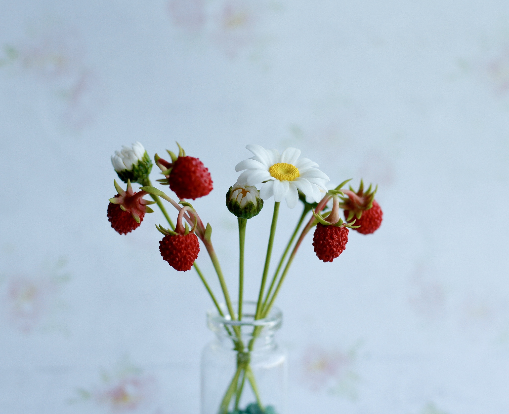Самозастывающая полимерная глина. Серединка сделана молдом, тонировка пастелью. Лепестки маникюрными ножницами. А стебельки это проволока обкатана глиной.
