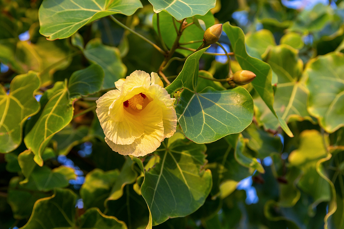 Деревья теспезии на пляже. Forest and Kim Starr, Starr Environmental, Bugwood.org.