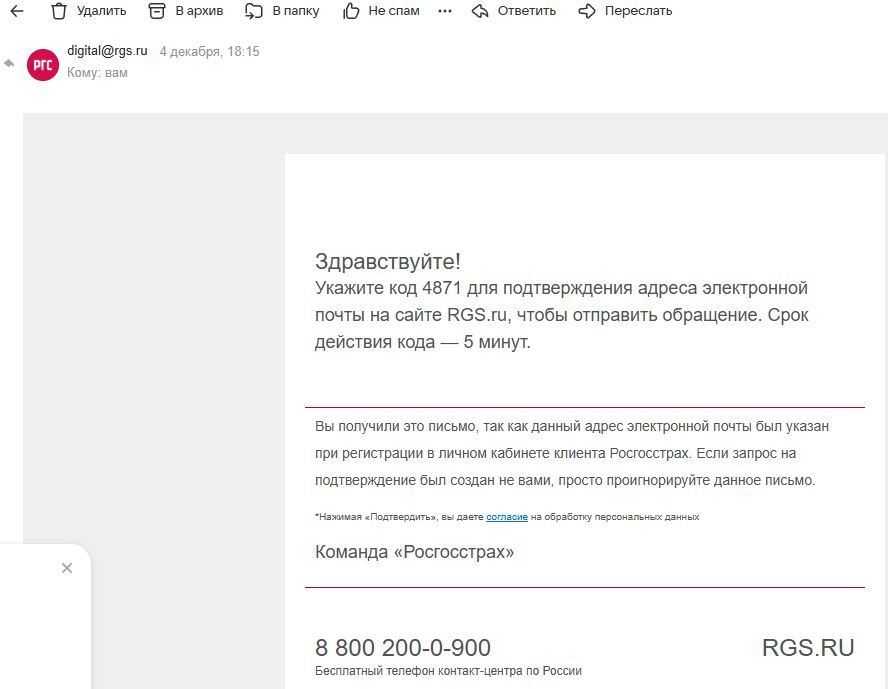 На всякий случай отправила это письмо ответом по официальному адресу help@rgs.ru