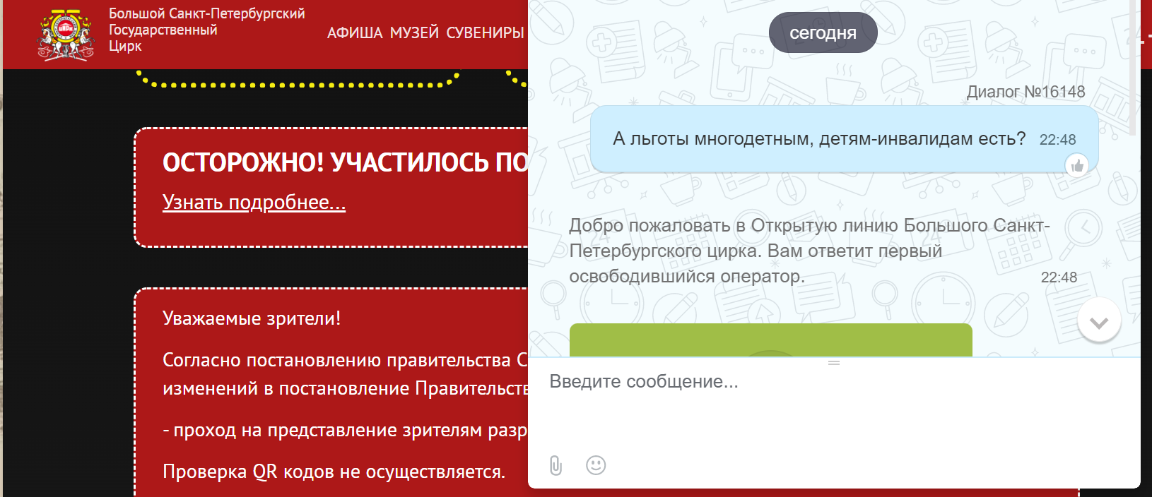 Большой Санкт-Петербургский ГОСУДАРСТВЕННЫЙ Цирк не имеет никаких льгот!