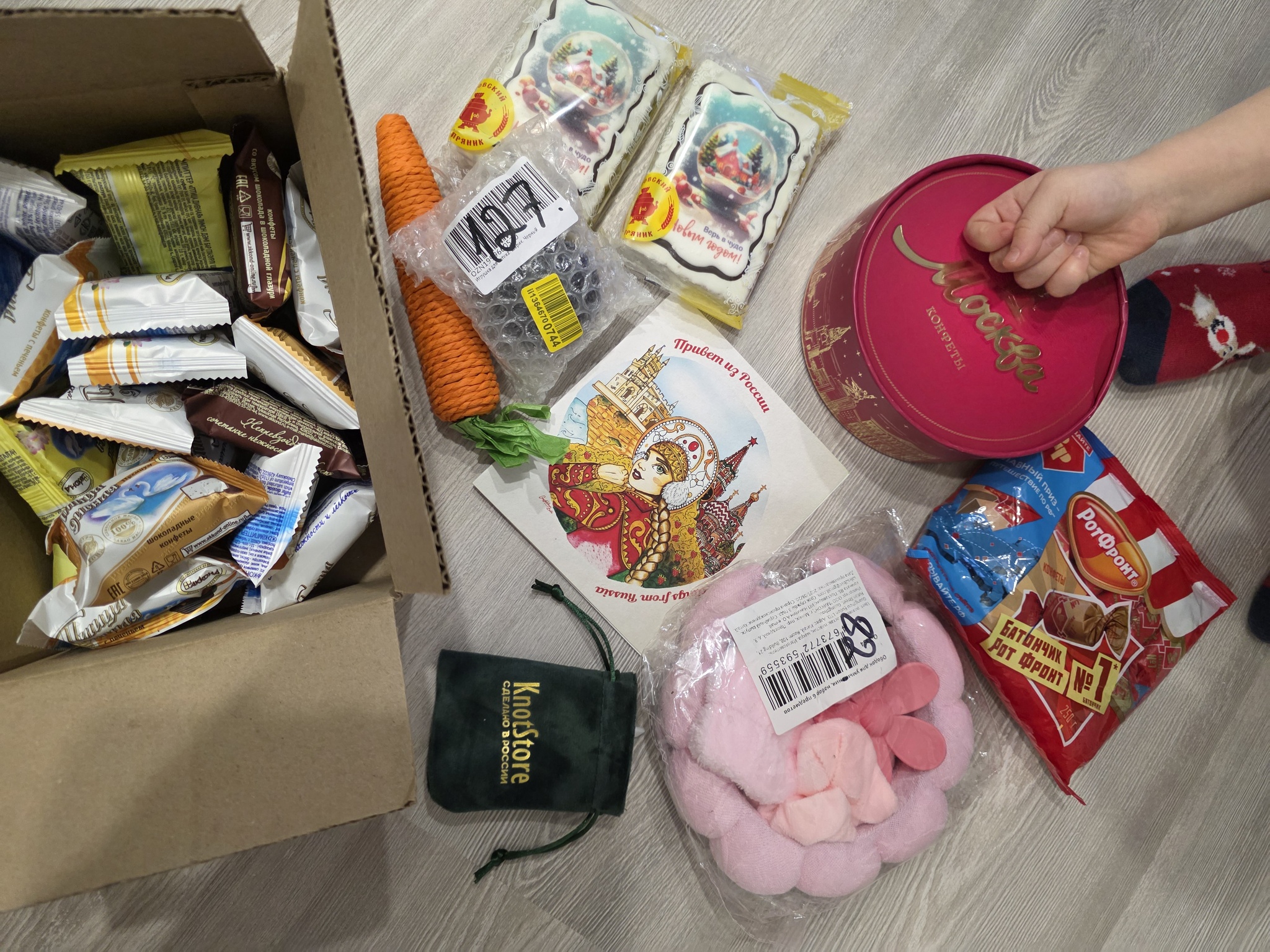 Также Снегурочка не забыла про наших котиков,что приятно.(Ещё был мячик который сразу кот присвоил) .