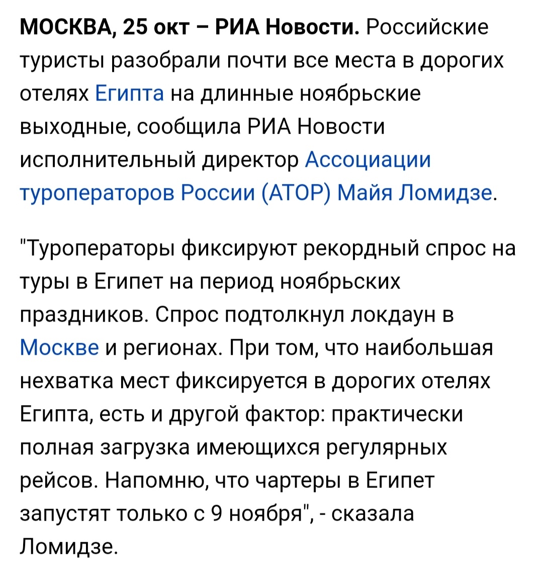 Россияне разобрали места в отелях Египта на ноябрьские выходные