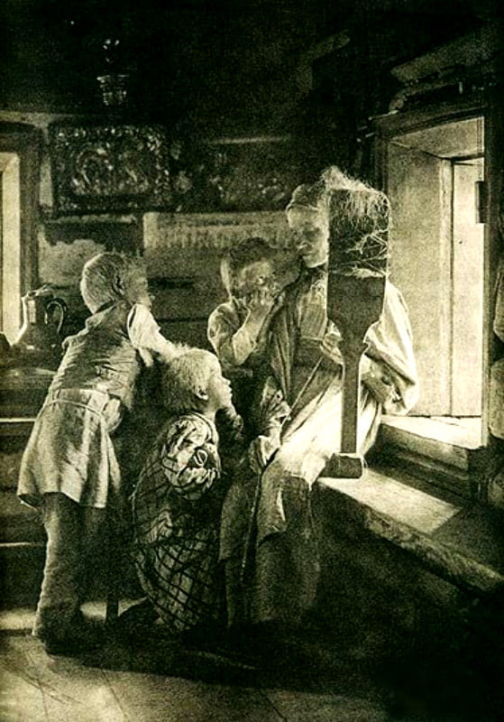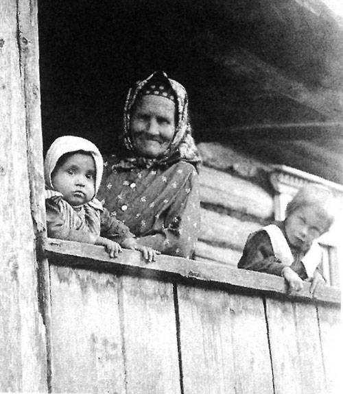 Бабушка с внуками. Новгородская губ., Крестецкий уезд. Начало. XX в.