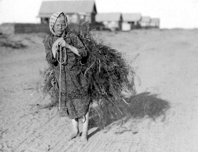 Девочка, несущая пук травы, в астраханской степи.1910-е. На Волге. Снимок Захария Захариевича Виноградова