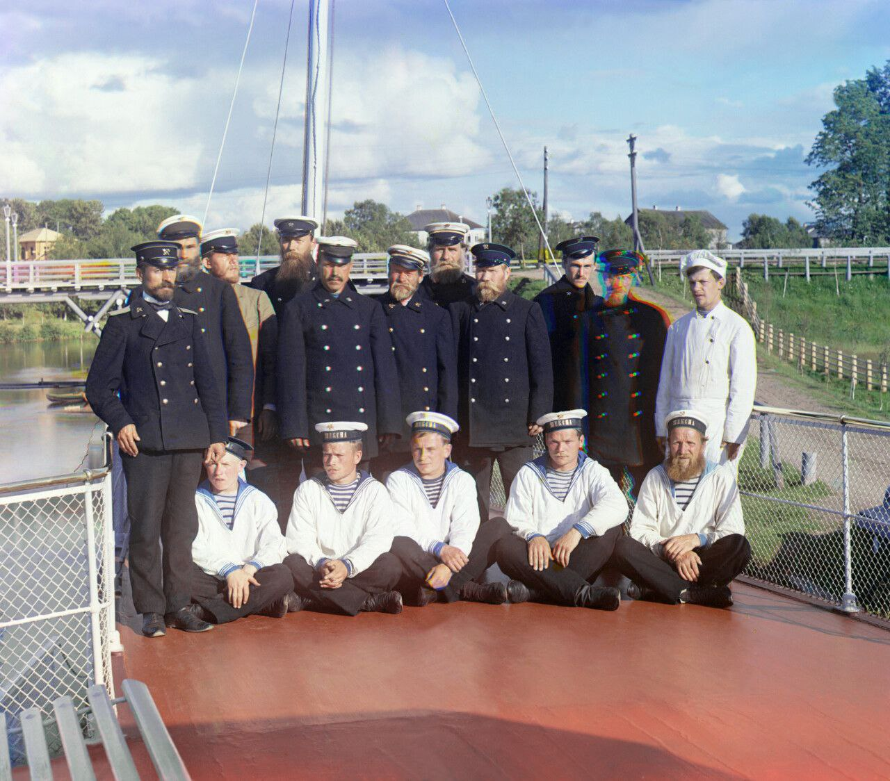 Экипаж теплохода «Шексна» М.П.С. Министерство связи и транспорта. Российская империя, 1909.