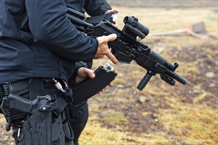 Карабин "Вепрь-12 Молот" в руках сотрудников Группы вмешательства Национальной полиции Франции (GIPN - Groupe d'intervention de la police nationale).