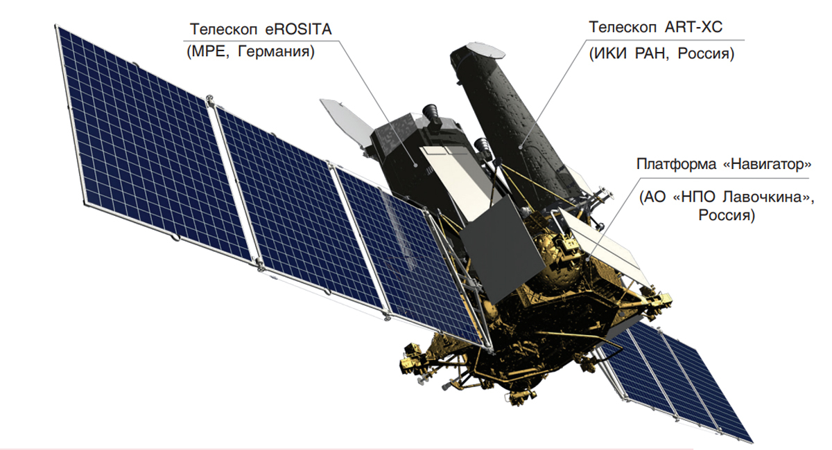 Космический аппарат "Спектр-РГ" разработан в НПО им. С. А. Лавочкина (входит в Роскосмос). Он создан с участием Германии в рамках федеральной космической программы России по заказу Российской академии наук. Обсерватория сканирует небо в широком энергетическом диапазоне с высокой чувствительностью и угловым разрешением. В конце октября 2019 года она успешно достигла рабочей орбиты, расположенной в точке Лагранжа L2.
