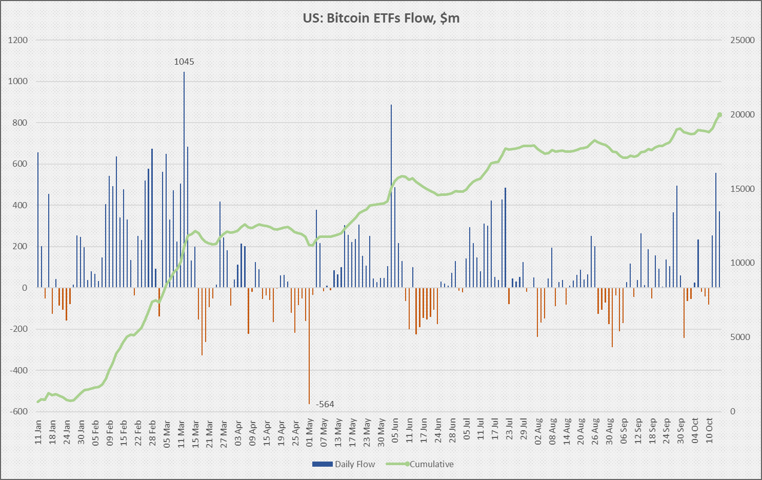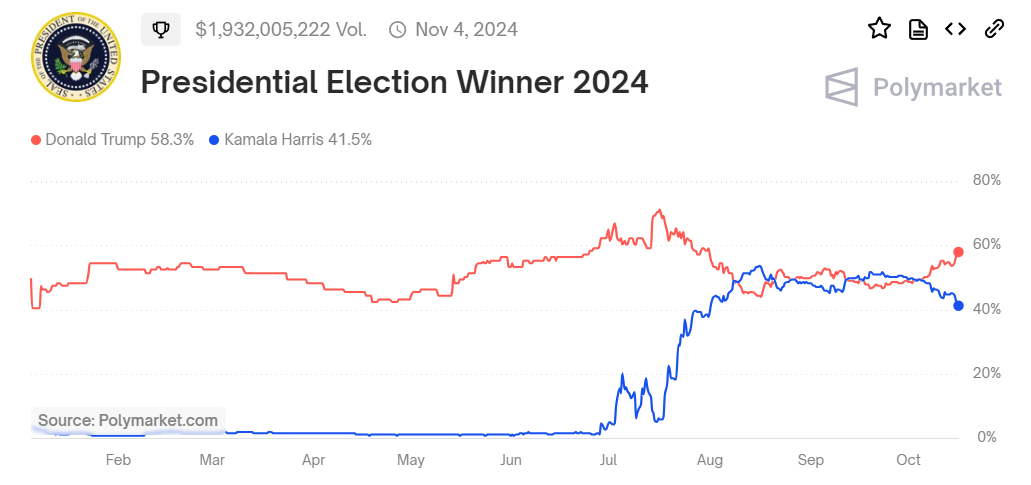 Единственное, что еще сдерживает активность крупных инвесторов, это неопределенность итогов предстоящих выборов. Однако подросшие шансы победы Трампа, называющего себя первым криптопрезидентом, привнесли оптимизм на рынок цифровых активов.