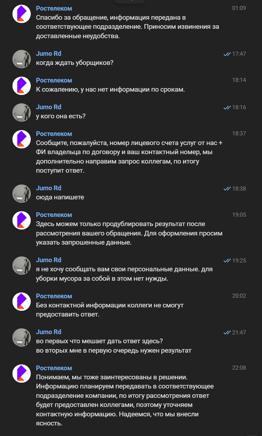 Неоднократно встречая появление представителя это конторы 321расов в комментах на пикабу с предложением обратиться к ним в личные сообщения для решения проблемы, решил пропустить итерацию возмущения на пикабу и написать сразу напрямую. В результате они сделали только хуже, так что предлагаю на ваш суд ситуацию. Понимаю, что немного упарываюсь в своей принципиальности, но в упор не вижу связи между их требованиями и моими. Насрали - уберите. Адрес вам дан. Ничего дополнительно тут не требуется.