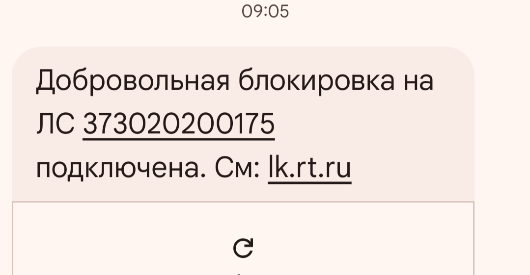 Сегодня утром получаю такую смс.сам не заходил в лк с прошлого месяца.оплатил всё вовремя.деньги сняли как положенно.доступа к лк нет ни у кого кроме меня.начинаю писать оператору.почти год с этим оператором,выбора нет,частный сектор,Gpon подключен.всё было нормально....а сегодня такой сюрприз.тёща сказала что ещё вчера по тв писали периодически что нет сети.хотя сегодня утром проверил что тв работает.