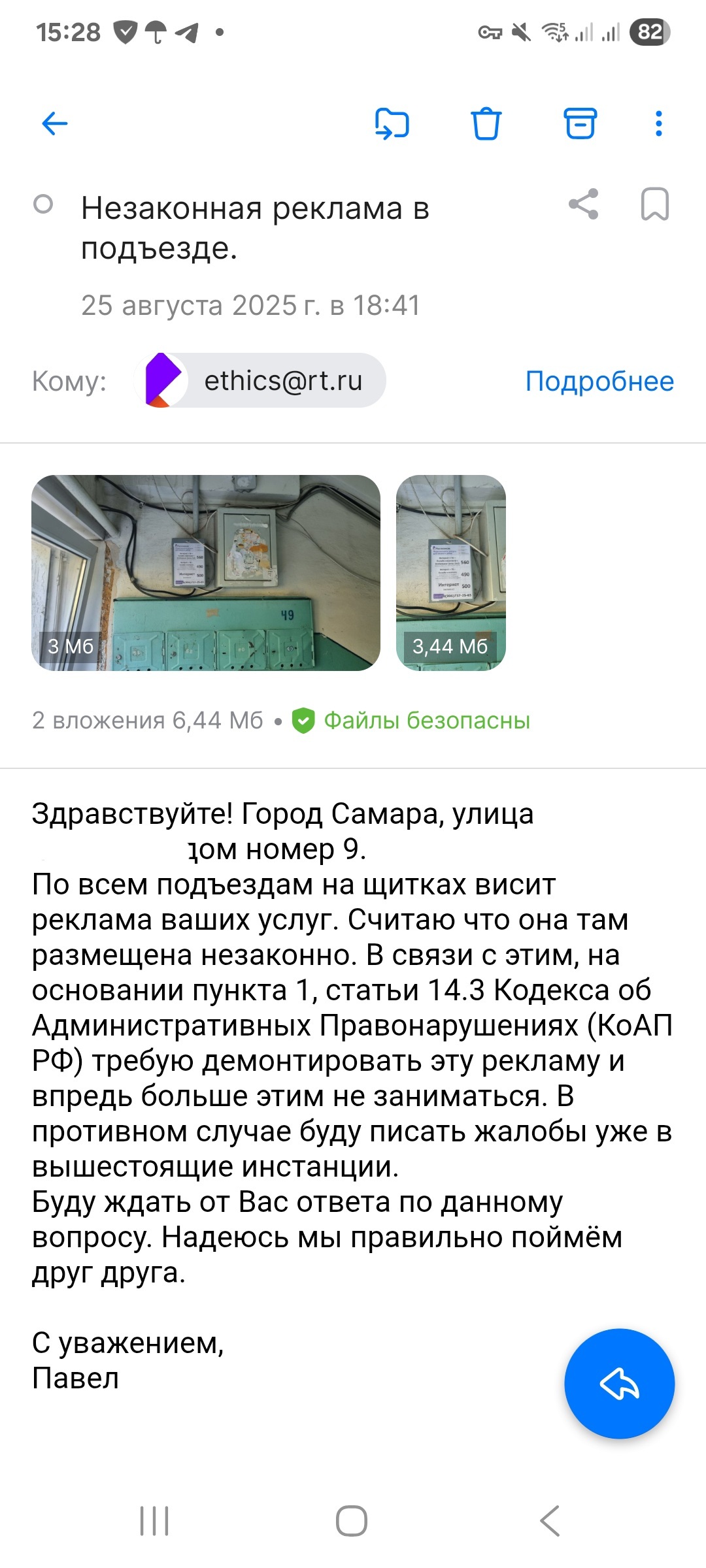 25 августа через почту отправил в эту контору гондурасов требование убрать свою сраную рекламу. (Фото 1)