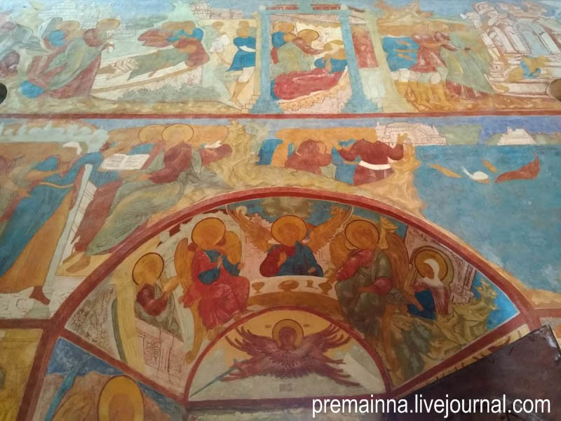 Побывала я как-то, ещё до пандемии, в Ростовском кремле, очаровалась уникальными композициями церковных фресок и белокаменных святыней. От экскурсоводов я узнала, что эти шедевры создавали в 1670-1680-ые годы мастера-иконописцы костромской и ярославской школ. Росписи стен храмов, к счастью, с годами стирались. Но в 1950-ые гг. их начали реставрировать. Храмы митрополичьей резиденции Ростовского кремля - ныне часть музея-заповедника.