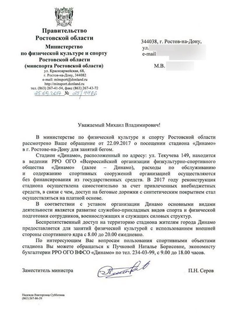 Авторам петиции за отмену платы на реконструированном стадионе «Динамо» пришел ответ из Министерства по физической культуре и спорту по Ростовской области.