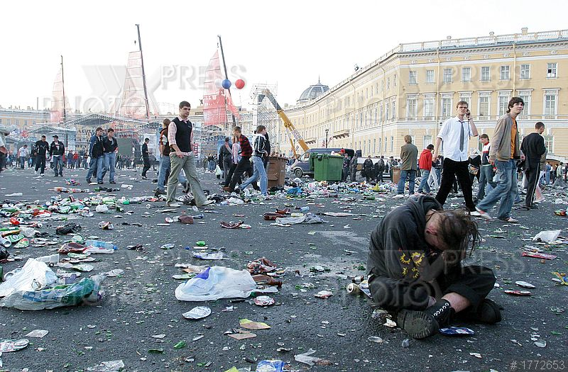 Лед десять назад были в Амстердаме на дне королевы, вечером было точь в точь, а утром уже все убрано было, и один раз в Гратце тоже на какой-то пивной попал, утром и намека не было на мусор и праздник.