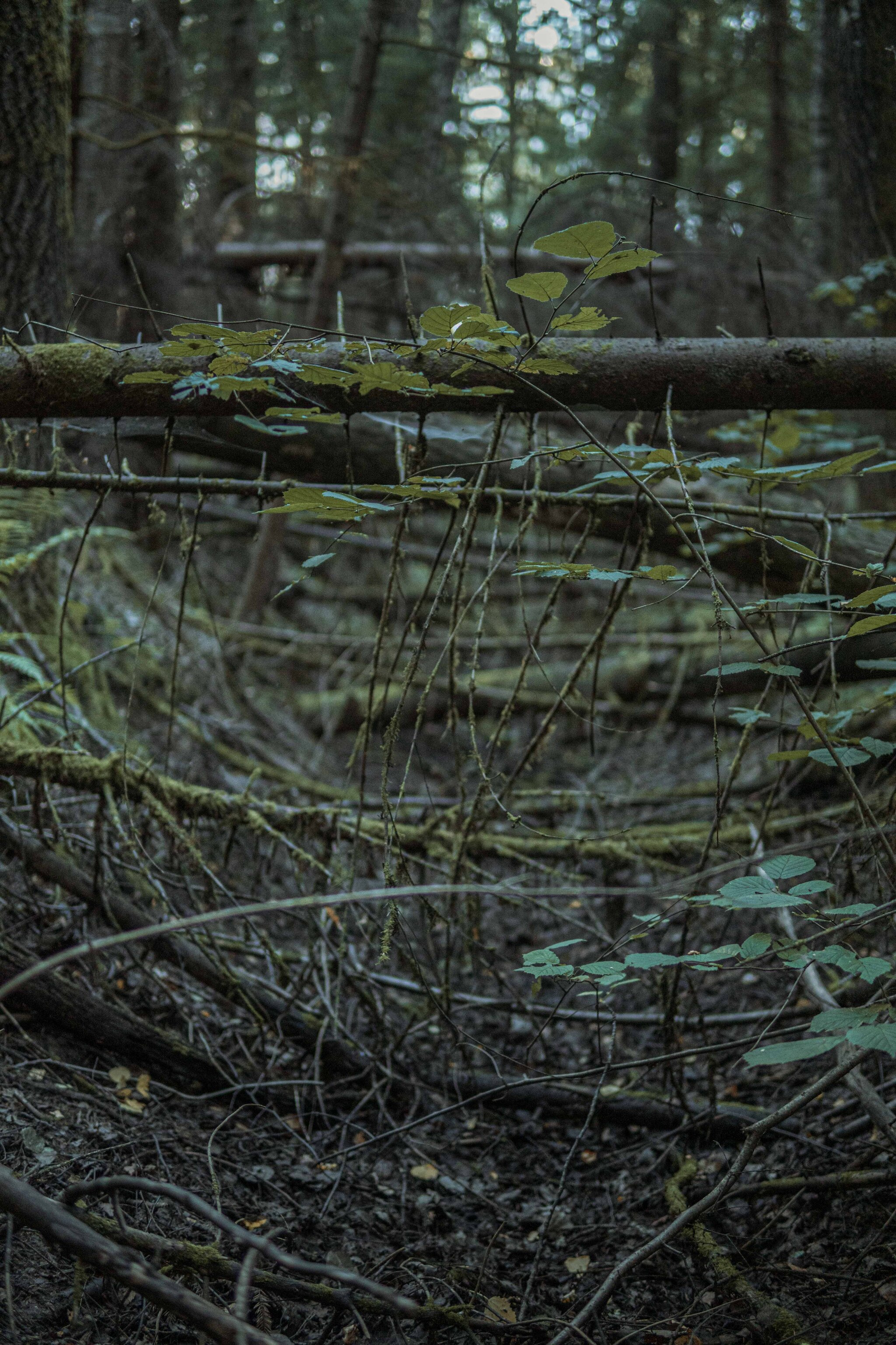 Забытая могила, протянувшаяся длинной кривой линией среди выросших и поваленных ветром деревьев.