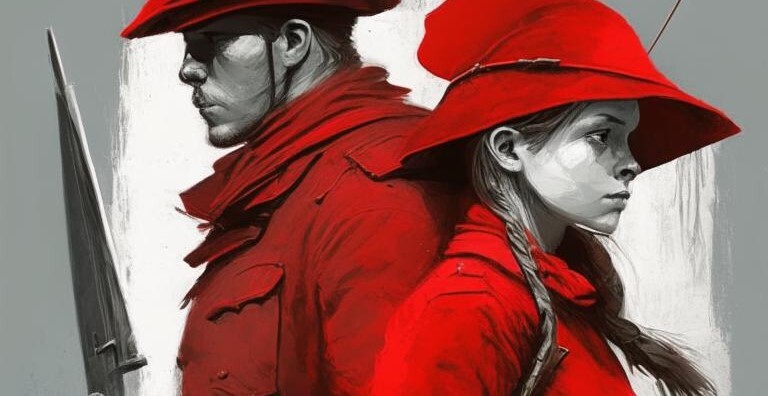 Сцена меняется. Мама печет пирожки, дает их своей дочери и говорит что-то вроде: "Красная Шапочка, отнеси пирожки бабушке, и не забудь дедушкин меч (слеза катится по щеке матери, видимо прошло время и дедушка уже умер) там по лесу волк бродит".