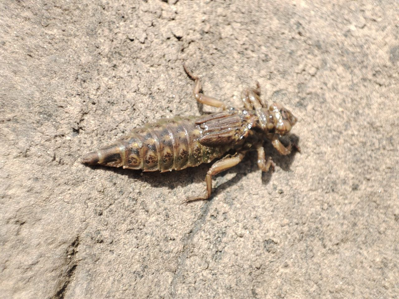 Пока мы наблюдали за первой стрекозой, рядом из воды полезла еще одна наяда! Чуть поменьше первой. Пошла на тот же камень и устроилась в двадцати сантиметров от первой.