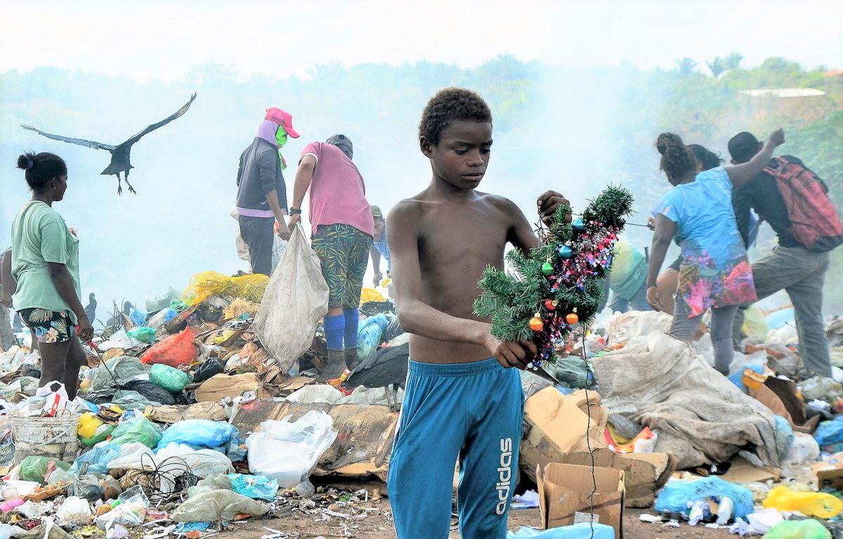 Бразилия, штат Мараньян. С 7 часов утра 12-летний Габриель и его мать роются на свалке в поисках пищи. Примерно еще 500 обитателей окрестных трущоб заняты тем же. Грузовик вывалил остатки еды из ресторана на землю. Вдруг на две минуты Габриэль забывает о необходимости бороться за свое существование и становится обычным ребенком. "Я увидел, как он нашёл пакет, улыбнулся и начал вытаскивать из него рождественскую ёлку", — рассказывает фотокорреспондент Жуан Паулу Гимараеш. Фотограф услышал, как мальчик сказал: "Мама, смотри, я нашёл ёлку! Она погнулась, но мы можем её выпрямить, починить гирлянду и поставить на рождество у себя!"