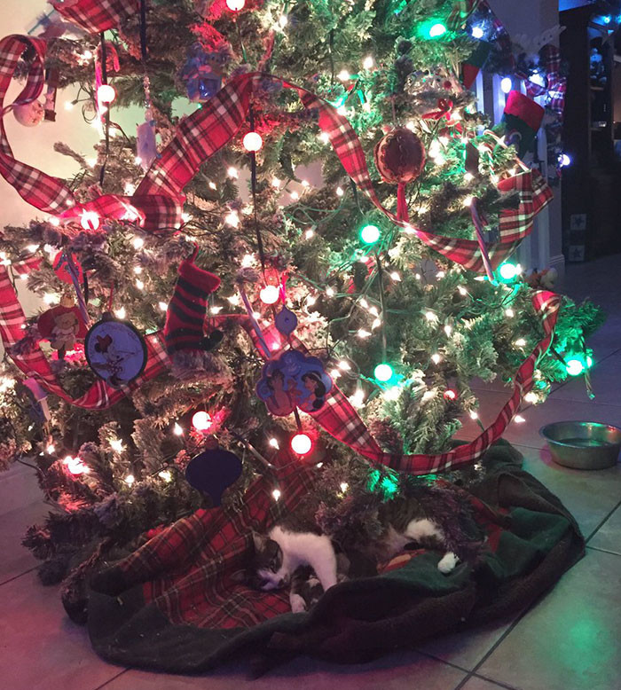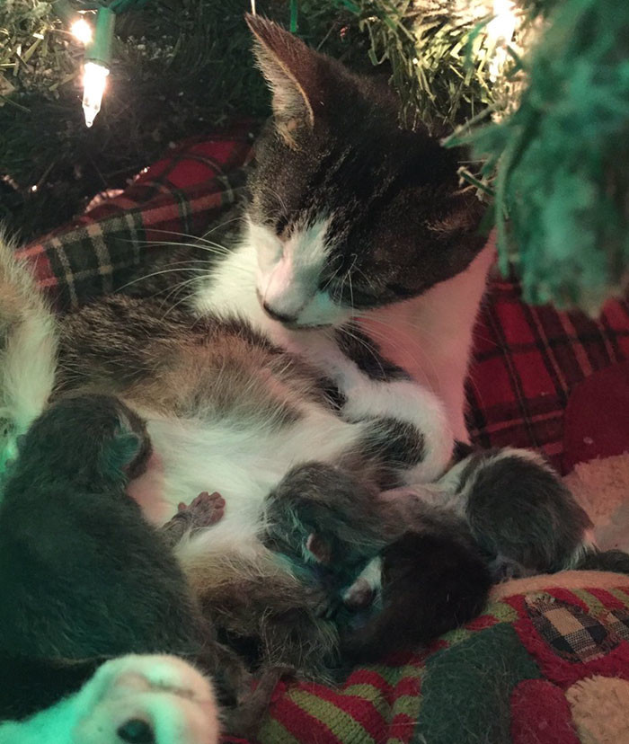 Источник: http://www.boredpanda.com/cat-gives-birth-under-christmas-tr...